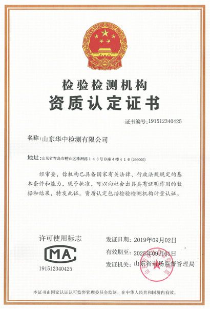 山東華中檢測有限公司,是通過山東省質(zhì)量技術(shù)監(jiān)督局資質(zhì)評審,依法成立的第三方環(huán)境檢測機(jī)構(gòu),公司所有設(shè)備通過北京市計(jì)量檢測科學(xué)研究院計(jì)量認(rèn)證,青島市計(jì)量技術(shù)研究院,并取得了檢定合格證書。同時(shí)通過了青島市公安局化學(xué)品使用備案,可面向社會出具第三方CMA權(quán)威檢測報(bào)告,檢測報(bào)告在中華人民共和國境內(nèi)具有法律效力。